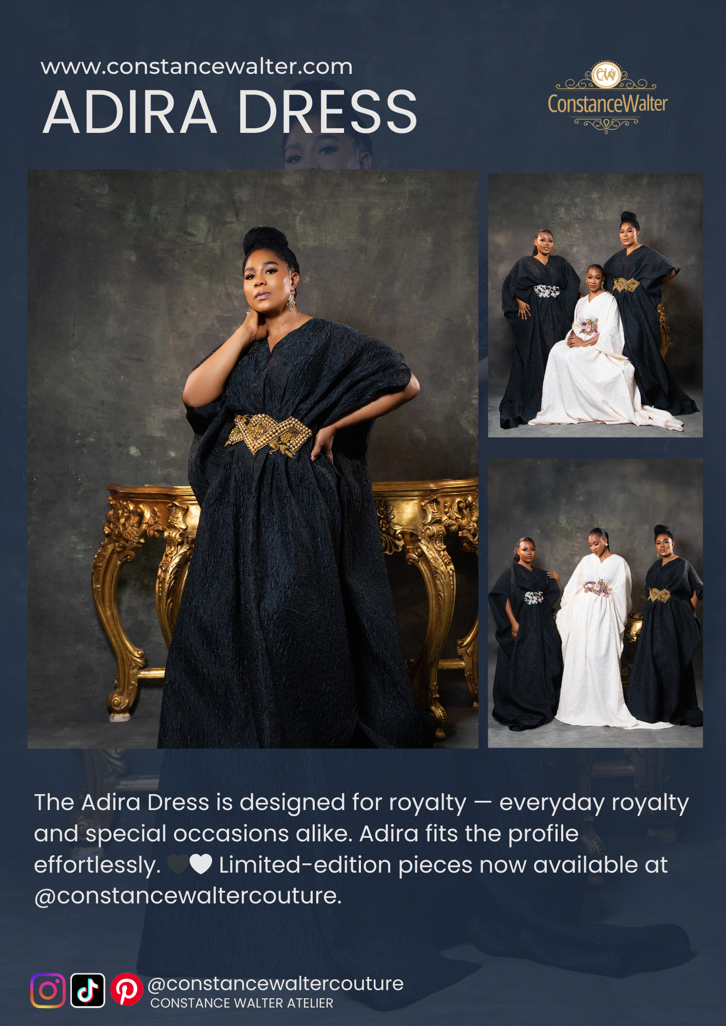 NEW TRENDS SHOP NOW! BOUTIQUE ELEGANCE LUXURY COLLECTION COUTURE HANDMADE INTRICATE DETAIL UNIQUE TIMELESS DISCOVER FEATURED COLLECTION 9 items Embroidered 16 items Amara Dress Collection 7 items Embellished 11 items Signature Shirt 2 items Signature Pants 17 items Special Ocassion THE AMARA DRESSCONSTANCE WALTER'S SHOP CHOICE Quick View Limited Edition The Amara Full Set in Copper Brown ₦480,000.00 Quick View Ready to Wear THE AMARA DRESS WITH EMBROIDERED TRIMMING ₦480,000.00 Quick View Limited Edition THE AMARA FULL SET WITH EMBROIDERED TRIMMING ₦580,000.00 Quick View Ready to Wear PATTERNED AMARA TWO PIECE SKIRT AND BLOUSE ₦380,000.00 Quick View Special Ocassion AMARA FULL SET SPECIAL OCCASION LIMITED EDITION ₦730,000.00 Quick View SS25 Collection THE AMARA FULL SET IN GOLD PETALS ₦580,000.00 SS25 COLLECTION Quick View Ready to Wear Signature Shirt in Ivory White ₦280,000.00 Quick View Ready to Wear Signature Shirt – Blush Pink Embellished ₦280,000.00 Quick View Embellished Signature Shirt – Blush Pink Floral Embellished ₦280,000.00 Quick View Embroidered Signature Shirt – Champagne Gold Ornate Embroidered ₦280,000.00 Quick View Embroidered Signature Shirt – Mint Green Ornate Embroidered ₦280,000.00 Quick View Amara Dress Collection The Amara Dress – Blush Pink Patterned Full Set ₦480,000.00 Quick View Amara Dress Collection The Amara Dress in Blush Pink Layered Ruffle Sheer ₦480,000.00 Quick View Amara Dress Collection The Amara Dress in Ivory White Embroidered ₦480,000.00 Quick View Amara Dress Collection The Amara Dress in Nude-blush ₦480,000.00 Quick View Amara Dress Collection The Amara Full Set Patterned ₦480,000.00 Quick View Amara Dress Collection The Amara Full Set Pearl Embellished ₦480,000.00 Quick View Amara Dress Collection The Amara Dress Full Set in Ruby Red (Limited Edition) ₦780,000.00 THE ADIRA DRESSCONSTANCE WALTER'S SS25 COLLECTION Quick View Limited Edition The Adira Dress (Black) ₦480,000.00 Quick View Limited Edition The Camilla Dress ₦480,000.00 Quick View Limited Edition The Adira Dress ₦480,000.00 BEST SELLER'S Quick View Amara Dress Collection The Amara Full Set Patterned ₦480,000.00 Quick View Embellished Luma Sheer Overlay Dress ₦480,000.00 Quick View Embellished SS25 Elara Dress ₦480,000.00 Quick View Limited Edition The Adira Dress (Black) ₦480,000.00 Quick View Amara Dress Collection The Amara Dress – Ivory Embroidered Sheer ₦480,000.00 Quick View Amara Dress Collection The Amara Dress – Vine Embroidered ₦480,000.00 Quick View Amara Dress Collection The Amara Dress – Embroidered Edition ₦480,000.00 Quick View Amara Dress Collection The Amara Dress – Layered Sheer Edition ₦480,000.00 OUR GALLERY